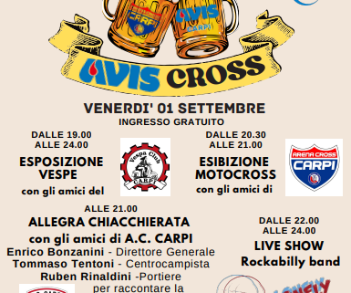 La Società AC Carpi ha accettato con gioia l’invito degli amici dell’Avis a partecipare alla “Festa della Birra – AvisCross” e sarà presente questa sera – a partire dalle ore 20.30 – in occasione della serata inaugurale.