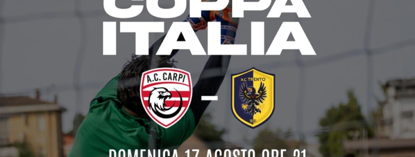 La società AC Carpi comunica che i biglietti per la sfida interna contro il Trento, prevista per Domenica 17 Agosto alle ore 21:00 e valida per il Primo Turno di Coppa Italia Serie C, sono disponibili in prevendita sul circuito Vivaticket (clicca sulla scritta Vivaticket) al seguente link: https://www.vivaticket.com/it/ticket/coppa-italia-2025-26-carpi-carpi-trento/275069.