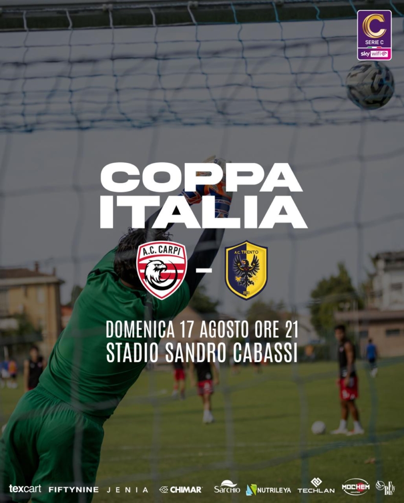 La società AC Carpi comunica che i biglietti per la sfida interna contro il Trento, prevista per Domenica 17 Agosto alle ore 21:00 e valida per il Primo Turno di Coppa Italia Serie C, sono disponibili in prevendita sul circuito Vivaticket (clicca sulla scritta Vivaticket) al seguente link: https://www.vivaticket.com/it/ticket/coppa-italia-2025-26-carpi-carpi-trento/275069.