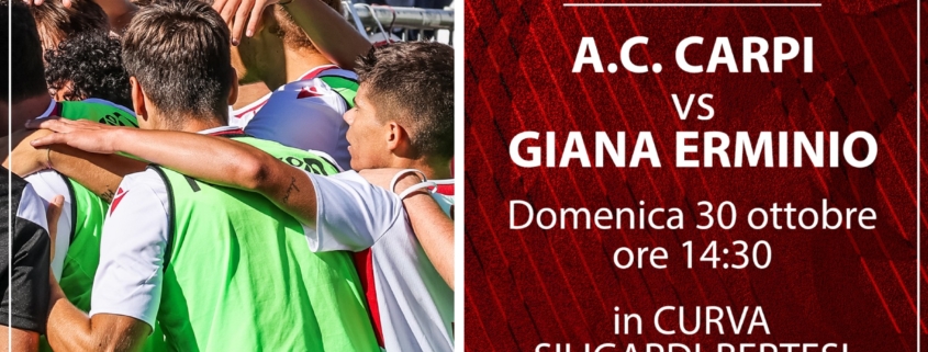 La Società AC Carpi e il Comitato di Carpi del CSI (Centro Sportivo Italiano) comunicano come, in occasione della gara interna contro la Giana Erminio – prevista per Domenica 30 Ottobre alle ore 14.30 e valida per la 11^ giornata, sarà attivata una speciale promozione dedicata, per il settore di Curva “Bertesi-Siligardi”.