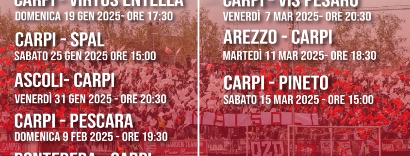 Calendario AC Carpi, ufficializzati date e orari fino alla 32^ Giornata