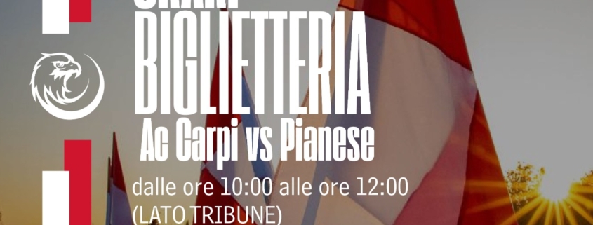 La società AC Carpi comunica che i biglietti per la sfida interna contro la Pianese, prevista per Domenica 11 Gennaio alle ore 14:30 e valida per la 21^ Giornata del Girone B di Serie C Sky Wifi, sono disponibili in prevendita sul circuito Vivaticket (clicca sulla scritta Vivaticket) al seguente link: https://www.vivaticket.com/it/ticket/serie-c-2025-2026-carpi-carpi-pianese/293115.