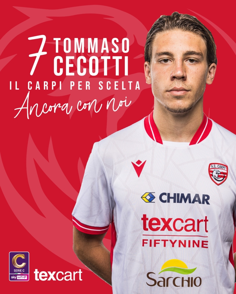 L’AC Carpi è lieto di annunciare di aver raggiunto l’accordo per il prolungamento del rapporto con Tommaso Cecotti.