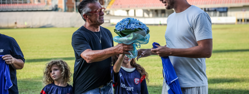 Nel ricordo di un tifoso, un lavoratore instancabile, un amico ma soprattutto una persona buona e testarda il cui primo pensiero – dopo gli affetti personali – era sempre rivolto al suo Stadio. Per ricordare una figura fondamentale e compianta, il Presidente Claudio Lazzaretti consegna al figlio Matteo e al fratello Roberto un piccolo presente: la maglia numero 9, numero indossato da Dulmieri in gioventù, con il logo dell’AC Carpi ma realizzata appositamente di colore blu royal. Una cromatura tanto amata dal nostro Claudio, che indossava sempre nelle sue infinite giornate di lavoro per rendere impeccabili i campi da gioco e le aree verdi dello Stadio.