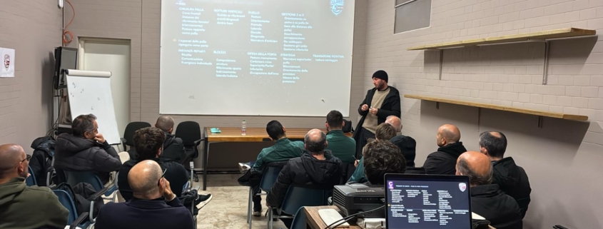 L’appuntamento ha rappresentato un importante momento di confronto e aggiornamento sulle dinamiche tattiche del calcio moderno, con particolare riferimento all’organizzazione del pressing e alle fasi di riaggressione immediata, analizzate sia sotto il profilo teorico sia attraverso esempi pratici di lavoro sul campo.