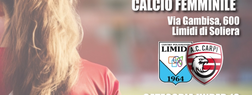 L’AC Carpi e il Centro Polivalente di Limidi organizzano un “OpenDay” dedicato al calcio femminile giovanile. L’appuntamento è per Martedì 25 Giugno, a partire dalle ore 18, presso il campo sportivo “Bruno Ghelfi” in Via Gambisa n°600 (Limidi di Soliera).