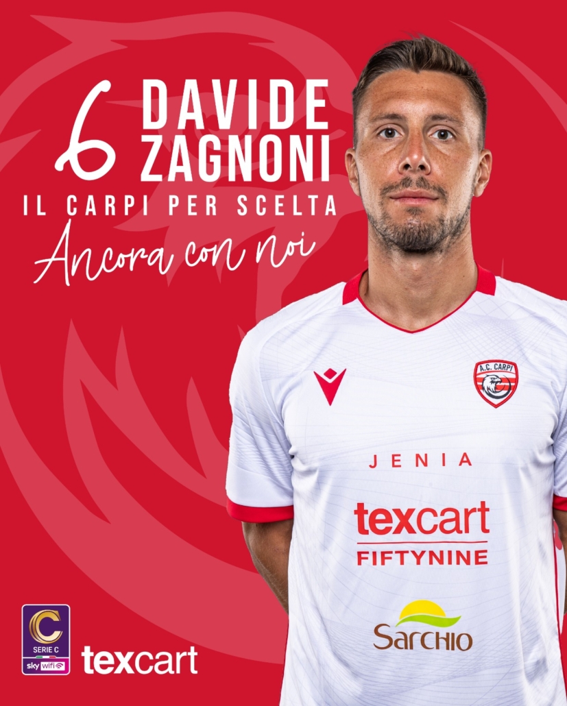 L’AC Carpi è lieto di annunciare di aver raggiunto l’accordo per il prolungamento del rapporto con Davide Zagnoni.