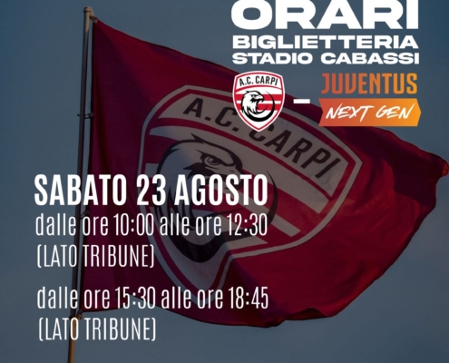 La Società AC Carpi comunica che, in occasione della gara di Sabato 23 Agosto alle ore 18:00 contro la Juventus Next Gen, valevole per la 1^ Giornata di Serie C Sky Wifi, sarà possibile - presso la biglietteria di Via Ugo da Carpi, secondo…