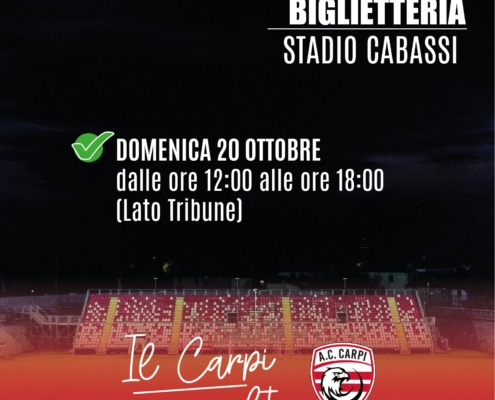 La società AC Carpi comunica che i biglietti per la sfida interna contro la Lucchese, prevista per Domenica 20 Ottobre alle ore 17:30 e valida per la 10^ giornata del Girone B di Serie C Now, sono disponibili in prevendita sul circuito Vivaticket…