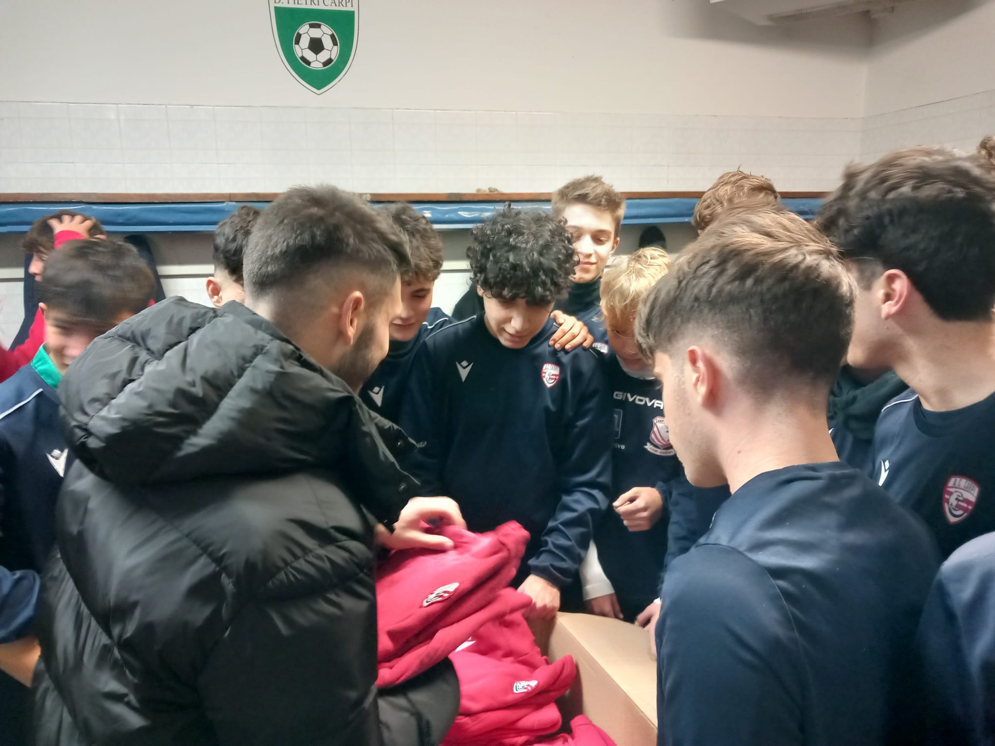 Alla selezione Giovanissimi, vincitrice del contest, in dono una felpa di rappresentanza. Regalo consegnato a ciascuno dei ragazzi di mister Sommella da bomber Simone Saporetti che, prima del momento dedicato alle chiacchiere e alle foto, ha aiutato i ragazzi a trovare la propria taglia.