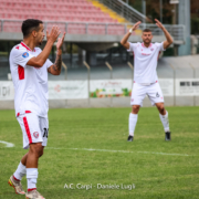 CARPI (4-3-1-2): Balducci, Sabattini (dal 67′ Laamane), Calanca (dal 46′ Ferraresi), Boccaccini, Navarro; Yabrè (dal 85′ Olivieri), Beretta, Ranelli; Cicarevic (dal 72′ Bouhali); Arrondini, Stanco (dal 70′ Villa). A disposizione: Kivila, Cestaro, Dominici, Laurenti. All. Bagatti.