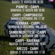 AC Carpi (3-4-2-1): Sorzi; Zagnoni, Lombardi, Rossini; Tcheuna, Figoli, Rosetti, Cecotti; Casarini, Cortesi; Gerbi. A disposizione: Scacchetti, Perta, Visani, Amayah, Toure, Pietra, Arcopinto, Mahrani, Forte, Stanzani, Sall. All. Cassani