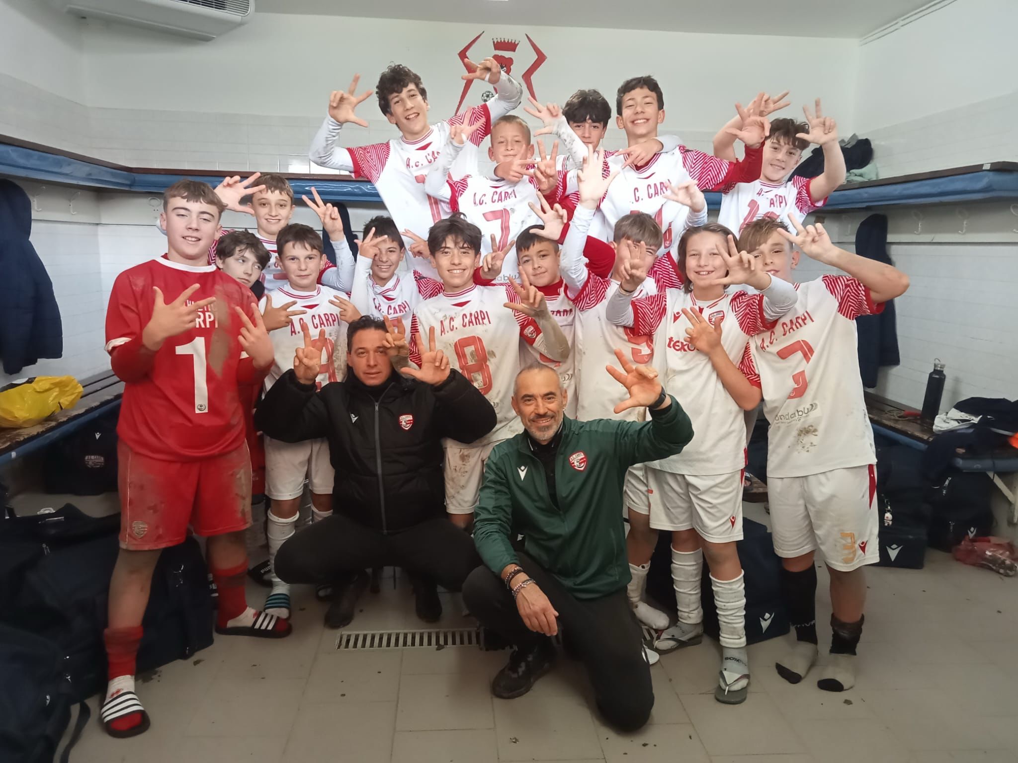 I ragazzi dell’Under 13 di mister Panisi festeggiano la vittoria 3-2 contro il Sassuolo
