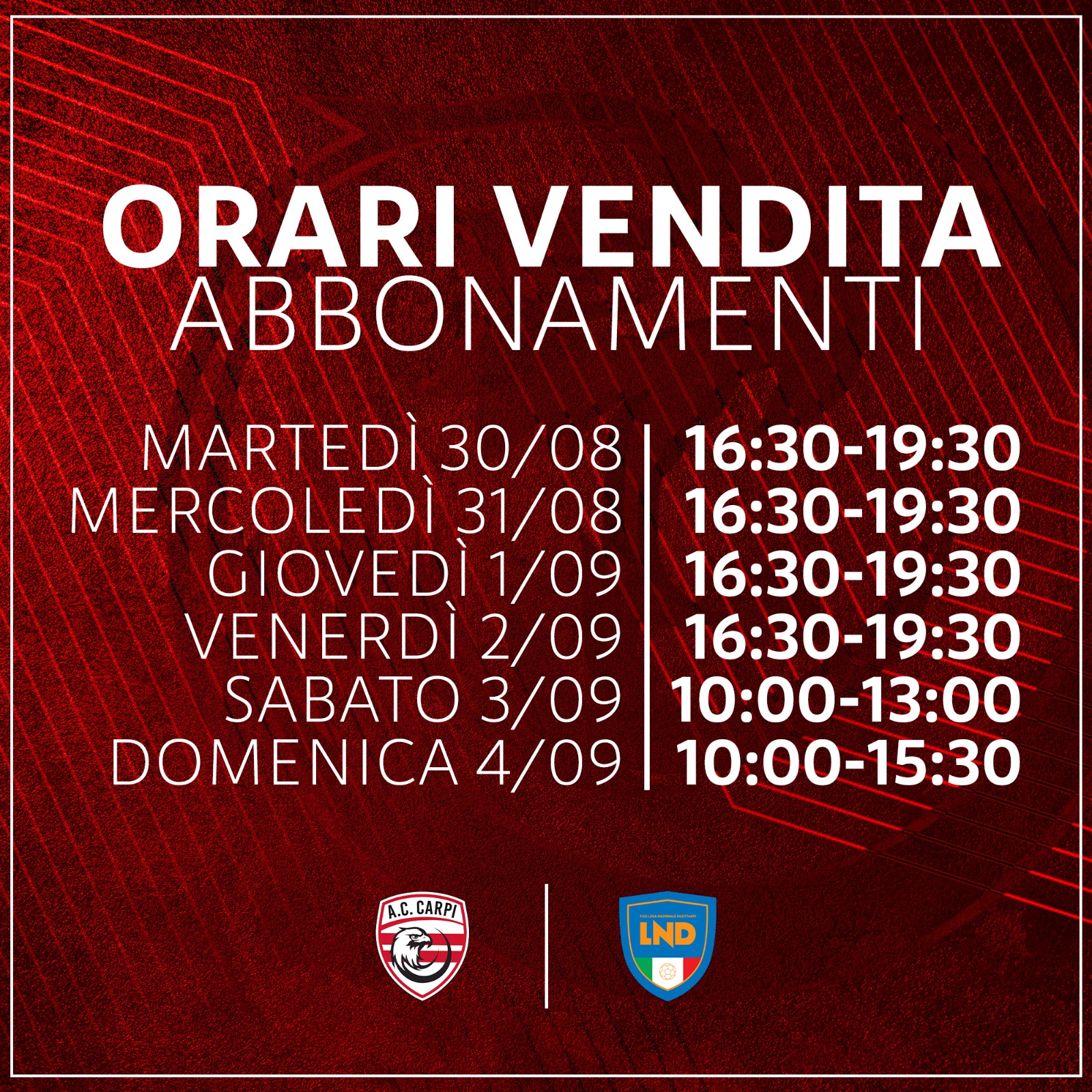 Nella giornata di Sabato 2 Settembre sarà possibile acquistare i tagliandi – per tutti i settori disponibili – presso la biglietteria fisica dello Stadio “Cabassi”, nei seguenti orari: